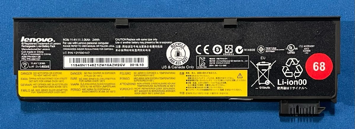 - 純正 新品 Lenovo ThinkPad X270 T450s等用 68 バッテリー 45N1127