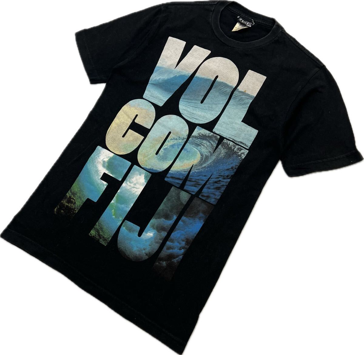 - VOLCOM ☆ BIGロゴ サーフィン プリント 半袖 Tシャツ ブラック S 春夏 海 ビーチ サーフ アメカジ ストリート 古着 人気 ボルコム■AK316