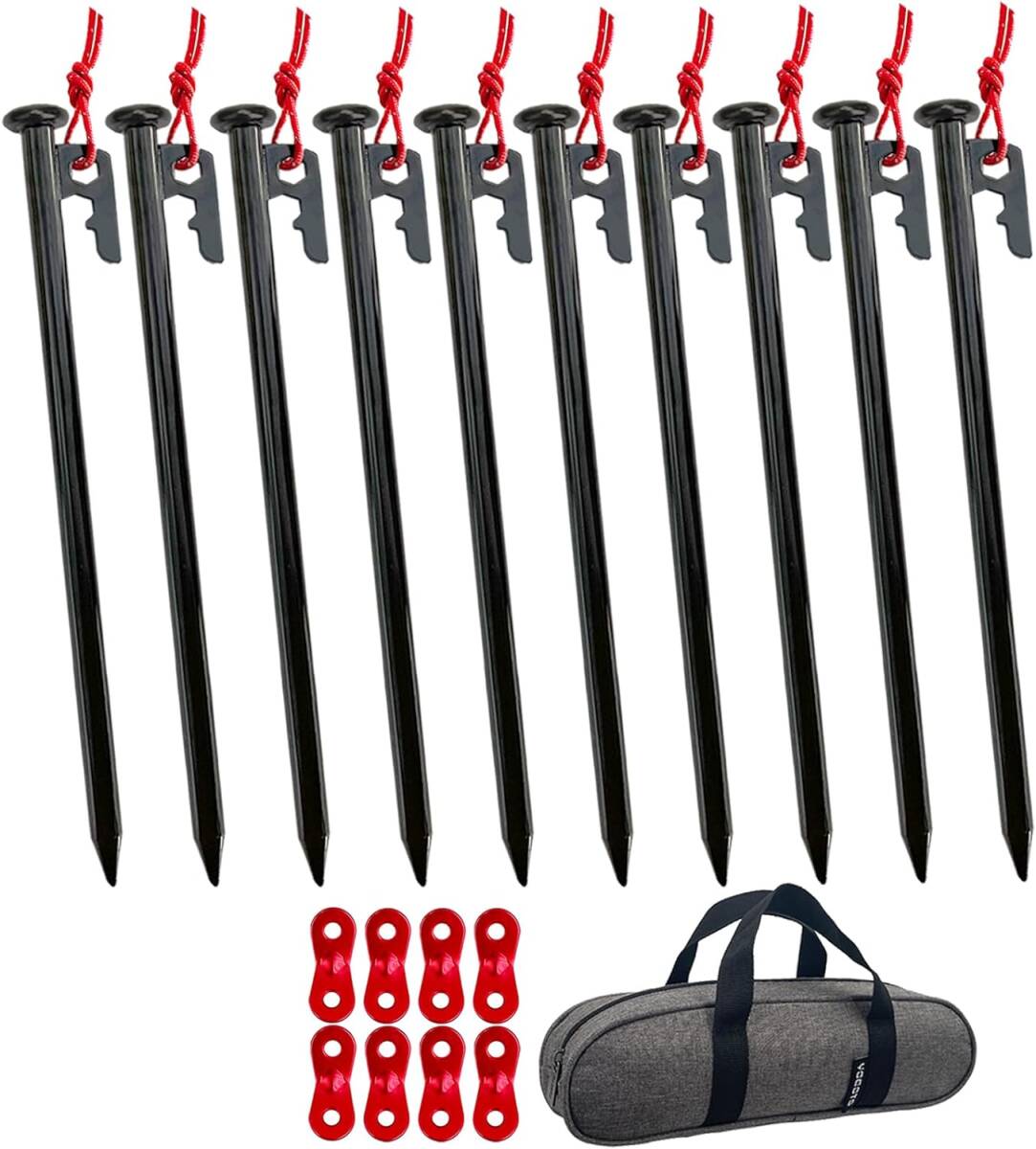 > 【新品】 【YOGOTO】 30cm ペグ セット 硬い土 砂地 草地用 タープペグ ペグセット (10本セット(夜光ロープ、自在金具と収納ケース付き))