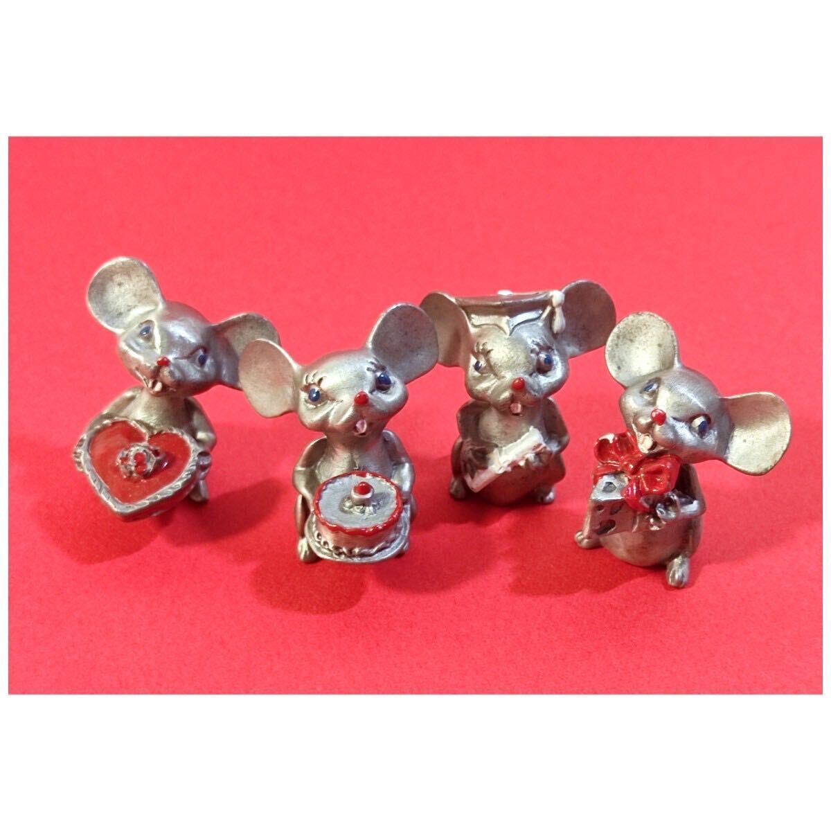 - ロイヤルセランゴール ねずみ 置物 4体 おまとめ 中古保管品