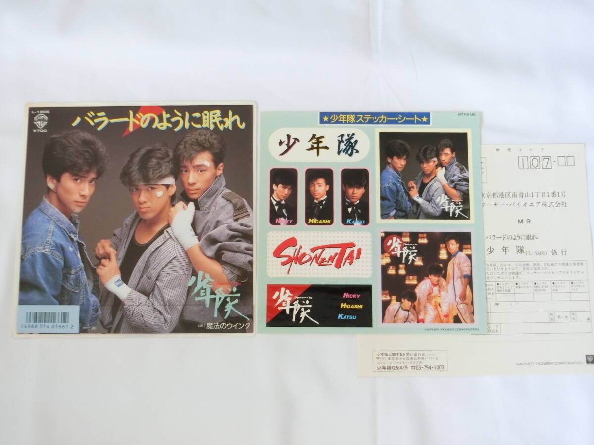 > 少年隊 EPレコード バラードのように眠れ 魔法のウインク ステッカー アンケートハガキ付き