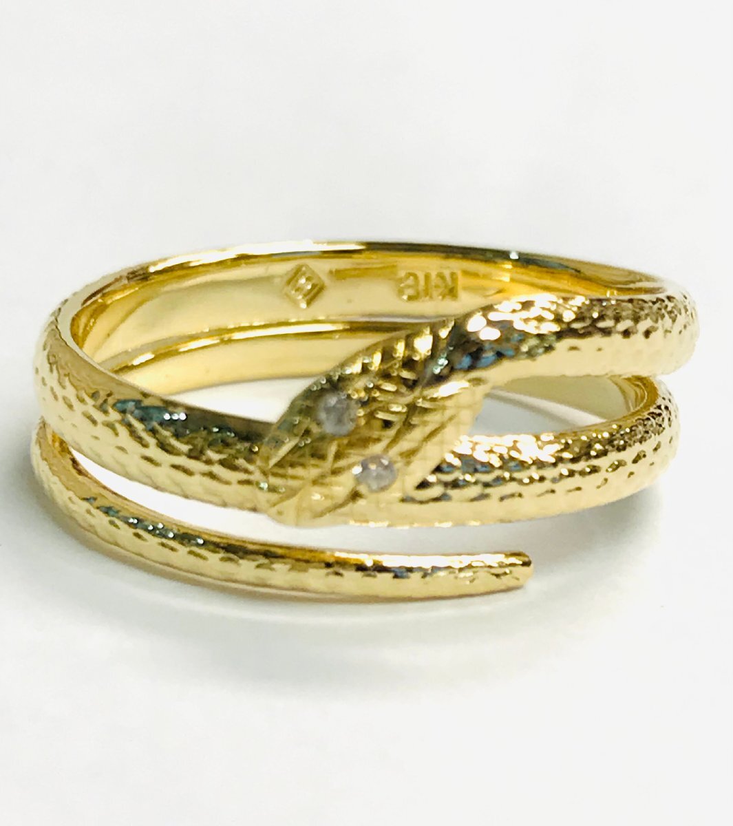 - qoj.Z3M10 K18 ゴールド スネイク ヘビ メレダイヤリング FD 19号