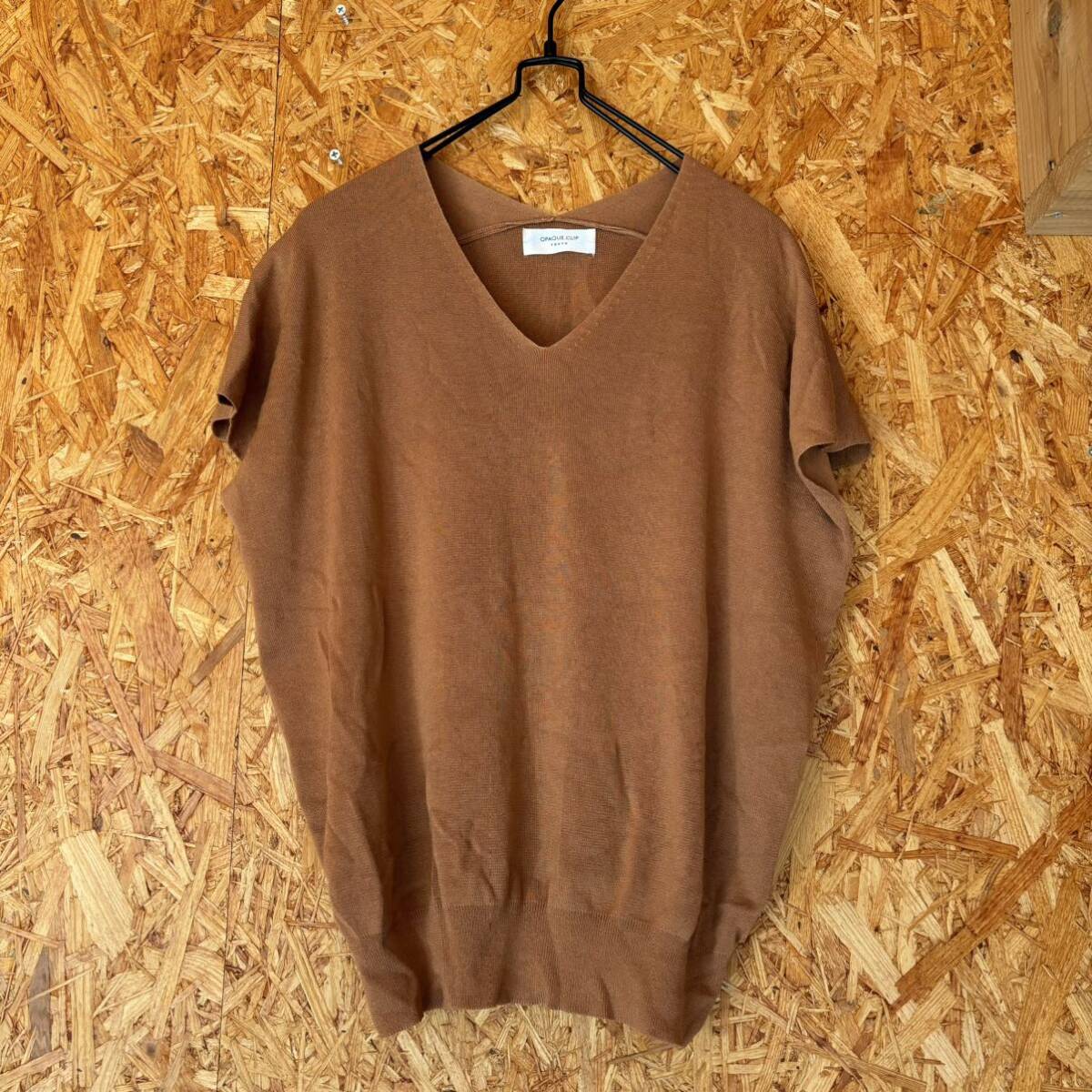 > 美品 OPAQUE CLIP ベージュ ブラウン ドルマン 半袖カットソー サマーニット Lサイズ レディース トップス 3579