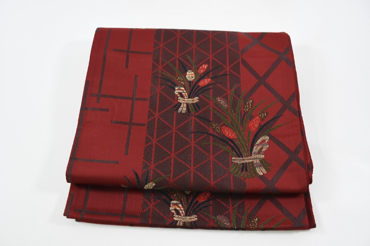 - 袋名古屋帯 六通柄 秋草 網目文 帯丈378cm ★着物屋 ne-11285 桜庭呉服店