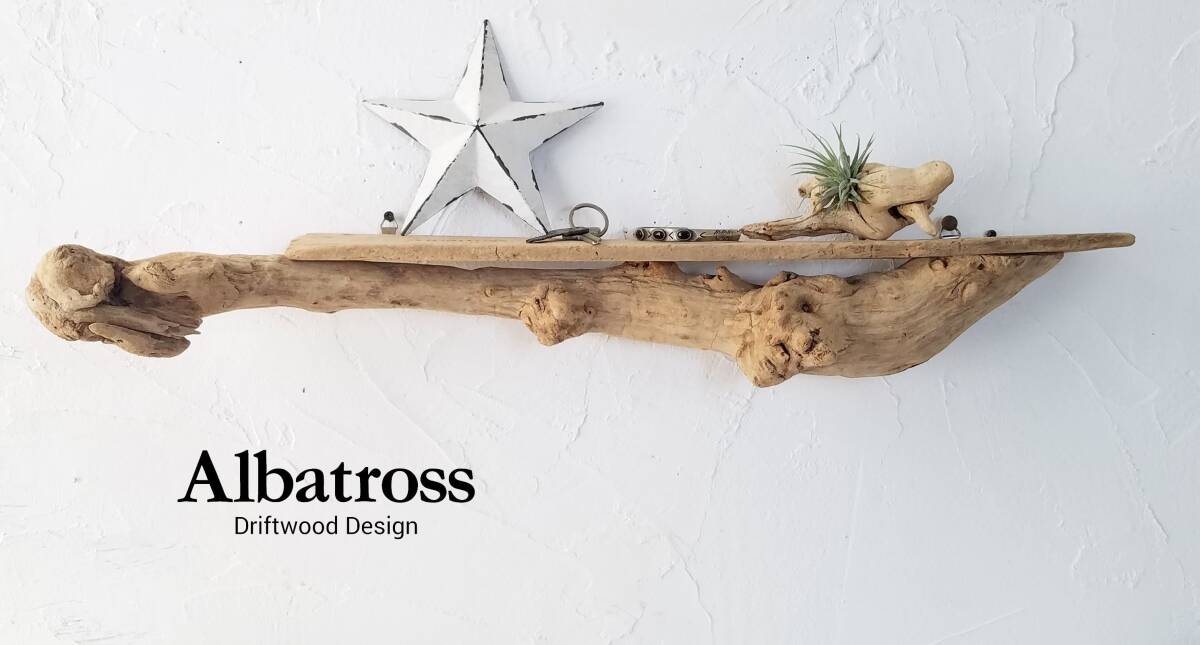 - 流木 横型 約62cm 壁掛け ホルダー スタンド エアプランツ インテリア ディスプレイ ハンドメイド 古材 ウォールシェルフ