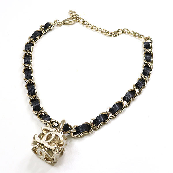 > シャネル キューブココマーク ネックレス メタル/ラムスキン シャンパンゴールド/ブラック A22K Sランク【中古】