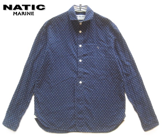 > 美品日本製!!ナティック NATIC*ドット柄刺繍 セーラーカッティングシャツ L 紺 ネイビー マリンユニフォーム MARINE UNIFORM