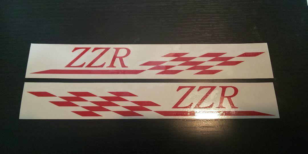- カワサキ ZZR チェッカーフラッグ カッティングステッカー 左右セット 赤色