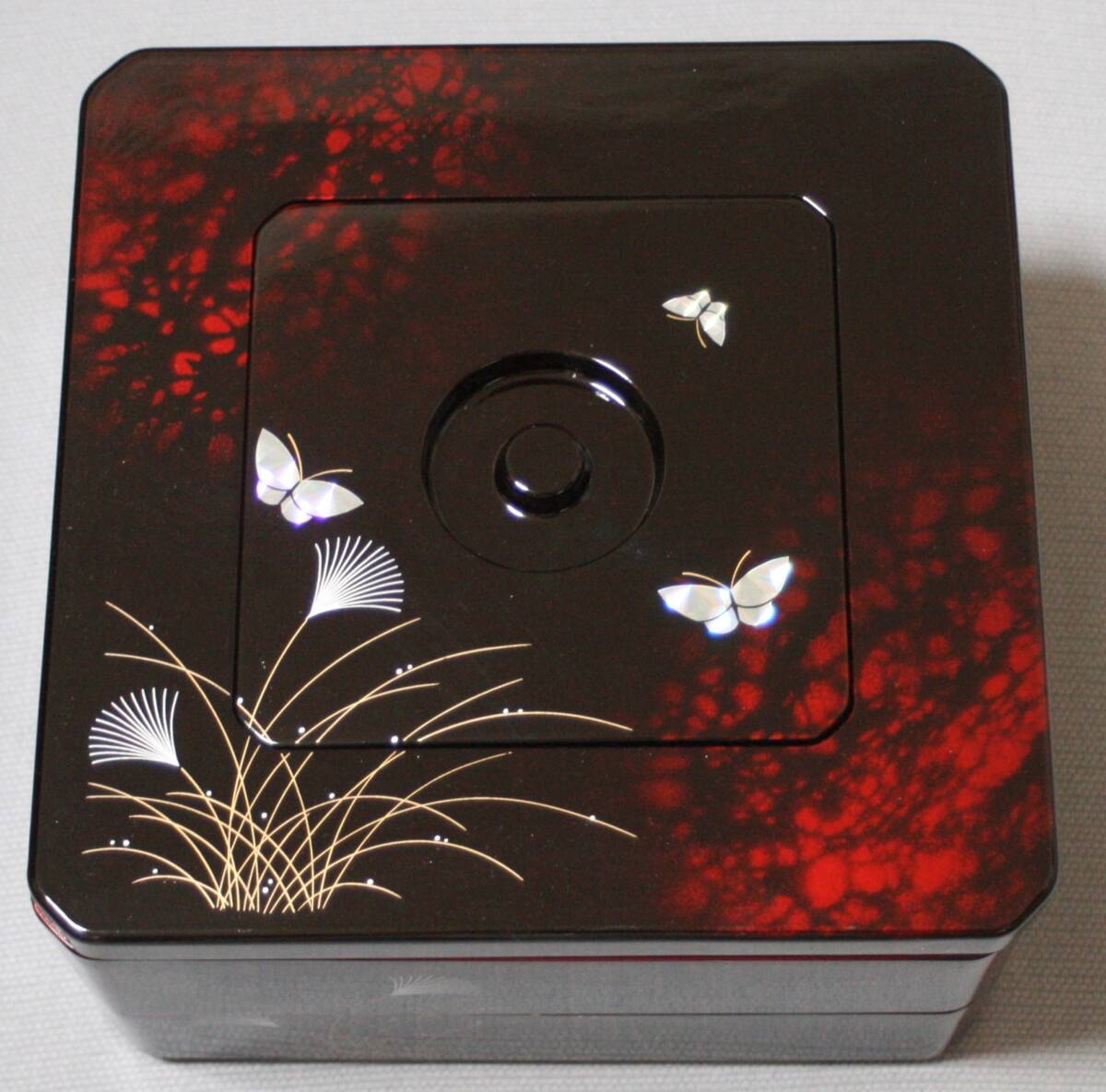 - ★未使用 8.0 皿付 二段重 赤別甲 チョウ お重 お正月★