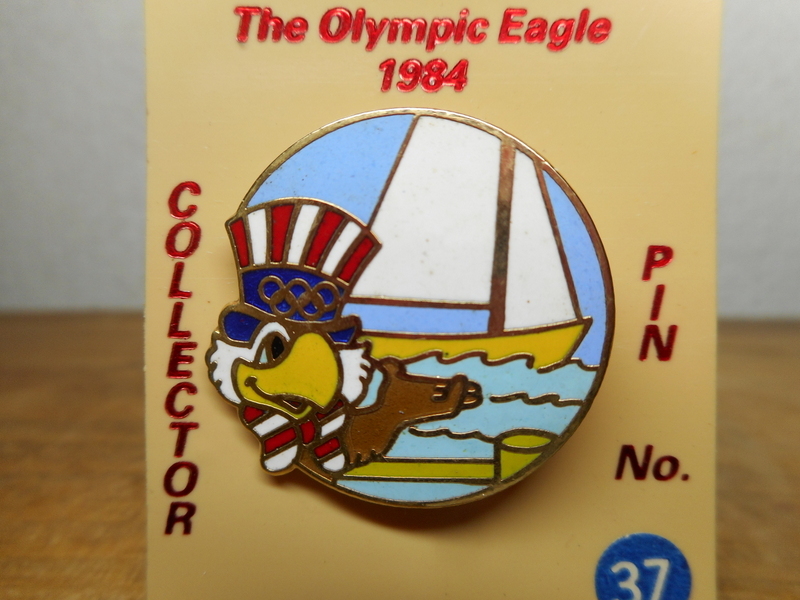 - 1984年 ロサンゼルスオリンピック イーグルサム 七宝焼き ブローチ バッジ セーリング 当時物