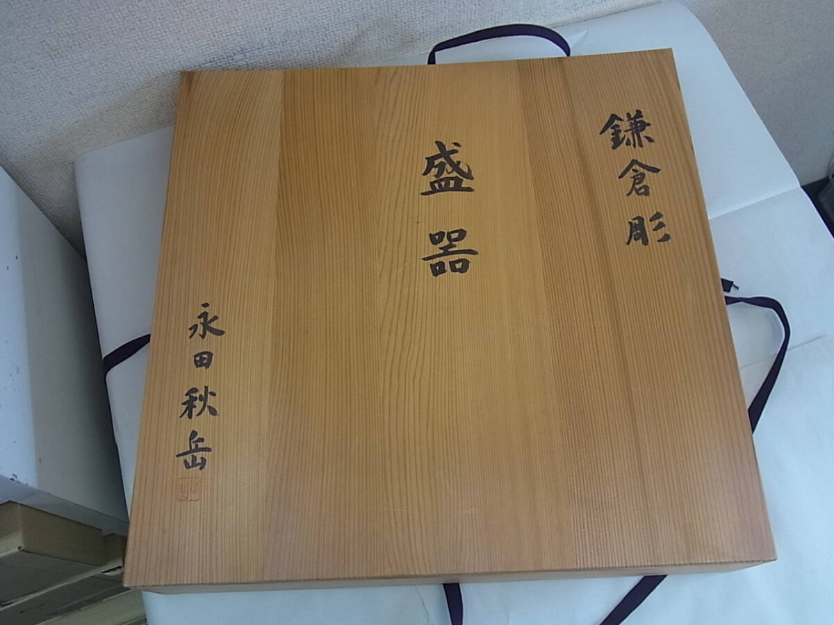 - 160729K03-0730K-A2□鎌倉彫□盛器 永田秋岳 直径約39cm 箱付/中古品