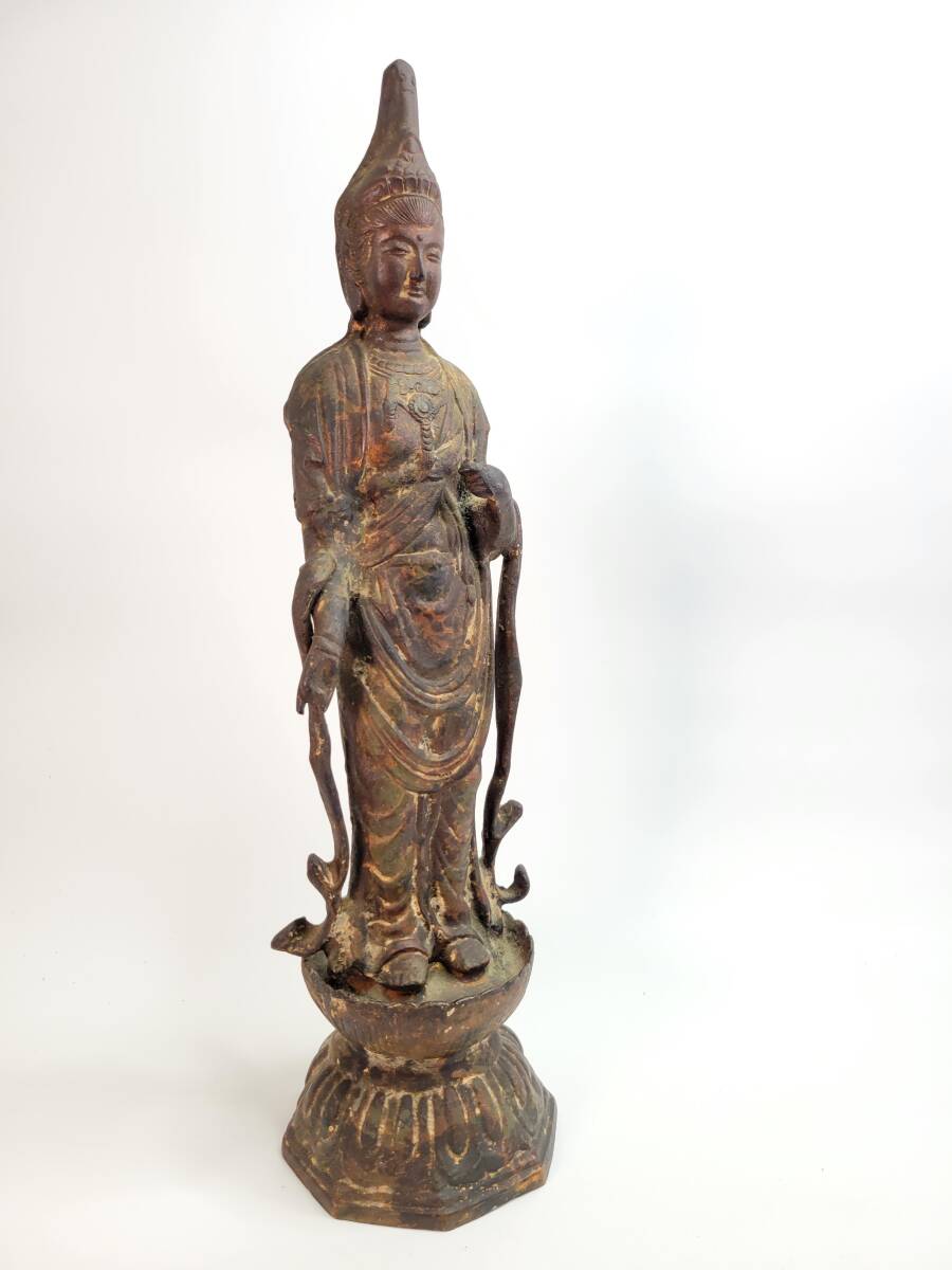 - 【送料無料・蔵出し品】観音菩薩立像 銅制? 高さ48㎝ 金塗 コレクション品 骨董品