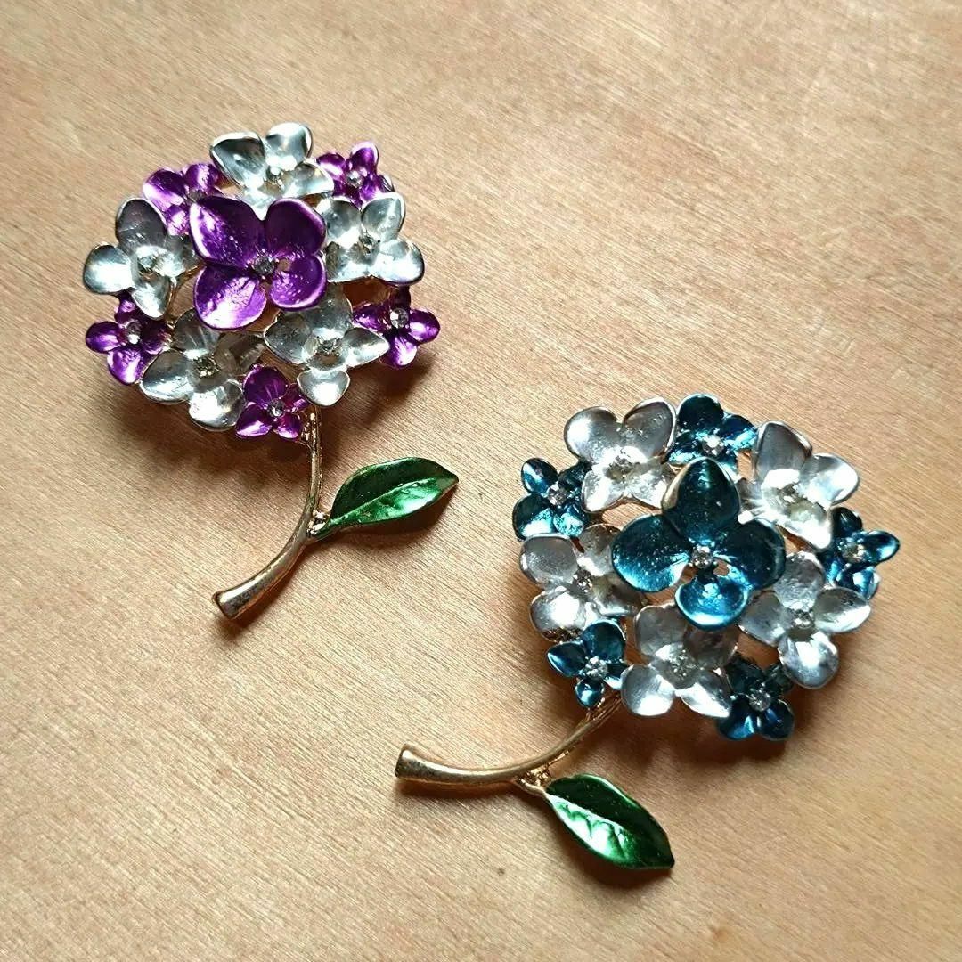- 【高級感あふれる七宝、エナメル】お得な、2色のあじさいの綺麗なブローチセット