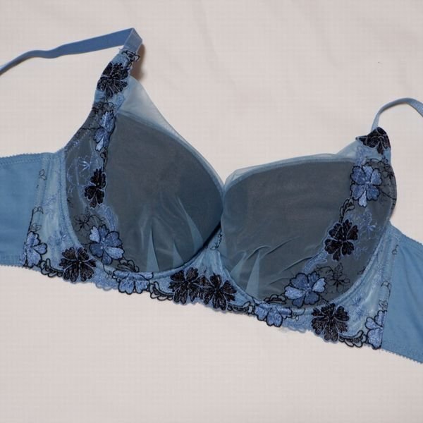 - トリンプ F80 脇高寄せ上 細見えシルエット 華刺繍 ブラジャー ブルー