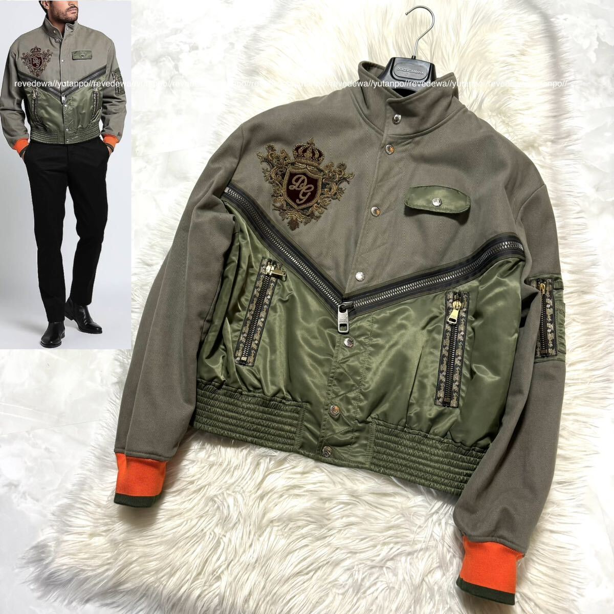 > 本物 美品 ドルチェアンドガッバーナ DGクラウン エンブレム ボンバー フライト ジャケット 48 カーキ ドルガバ DOLCE&GABBANA