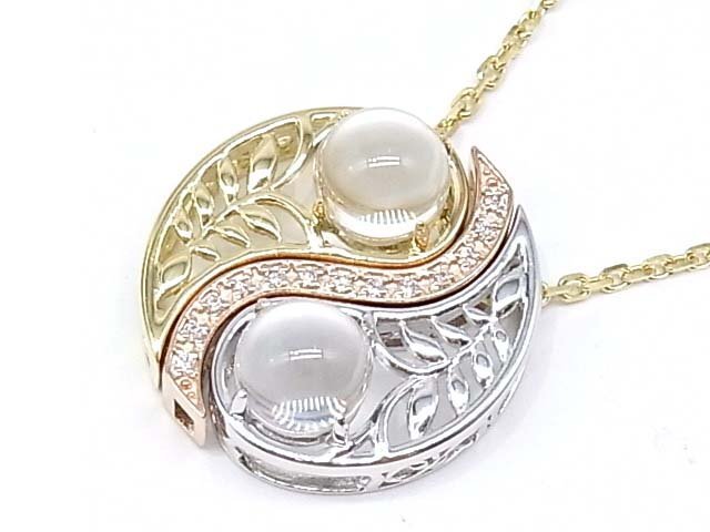 > g19618 K18YG/WG/PG クォーツ D0.09ct ネックレス USED 美品 11.9g 45cm アジャスター付