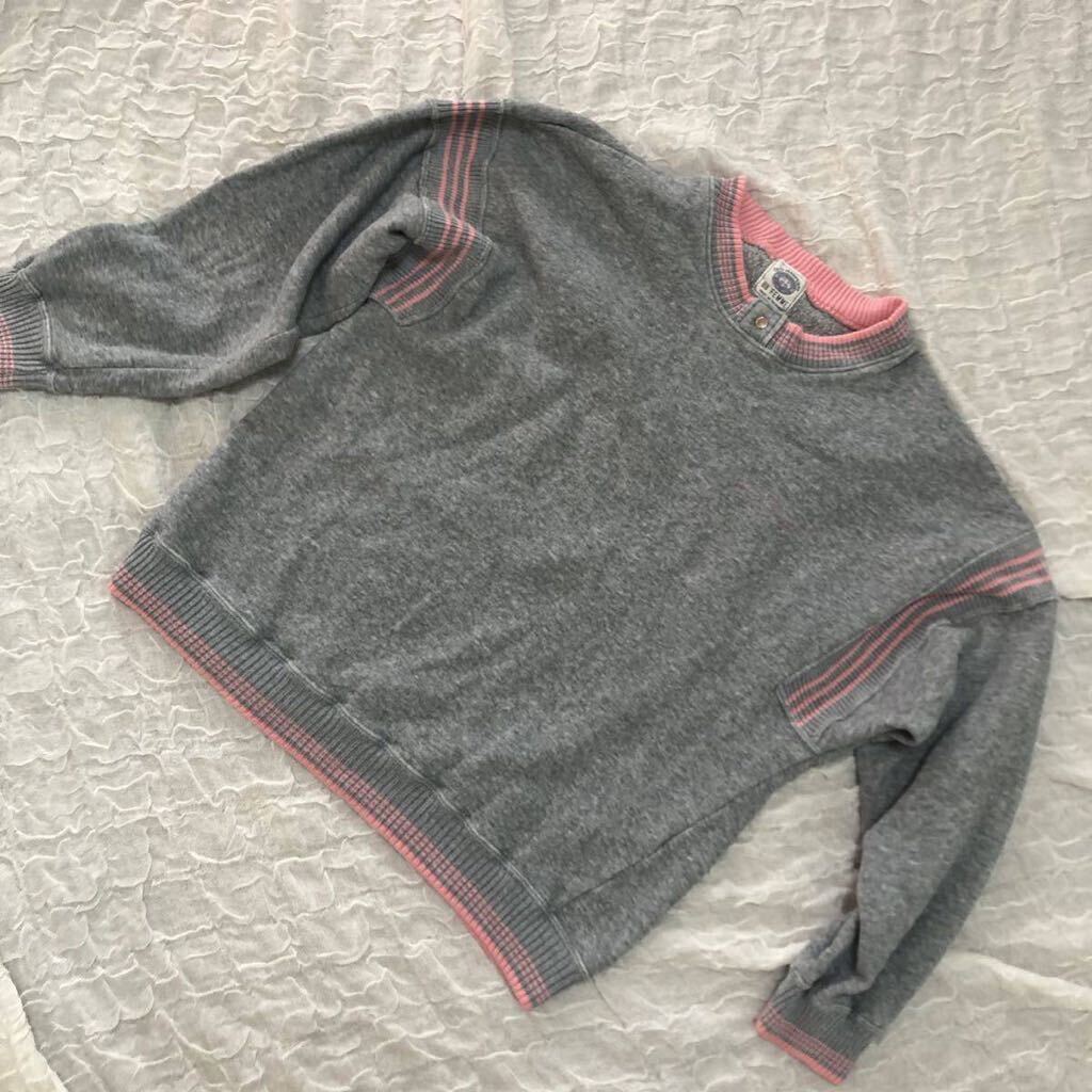 - 古着 レトロ 長袖 スウェット トレーナー トップス C'EST MONPYJAMA グレー ピンクライン M ★1000