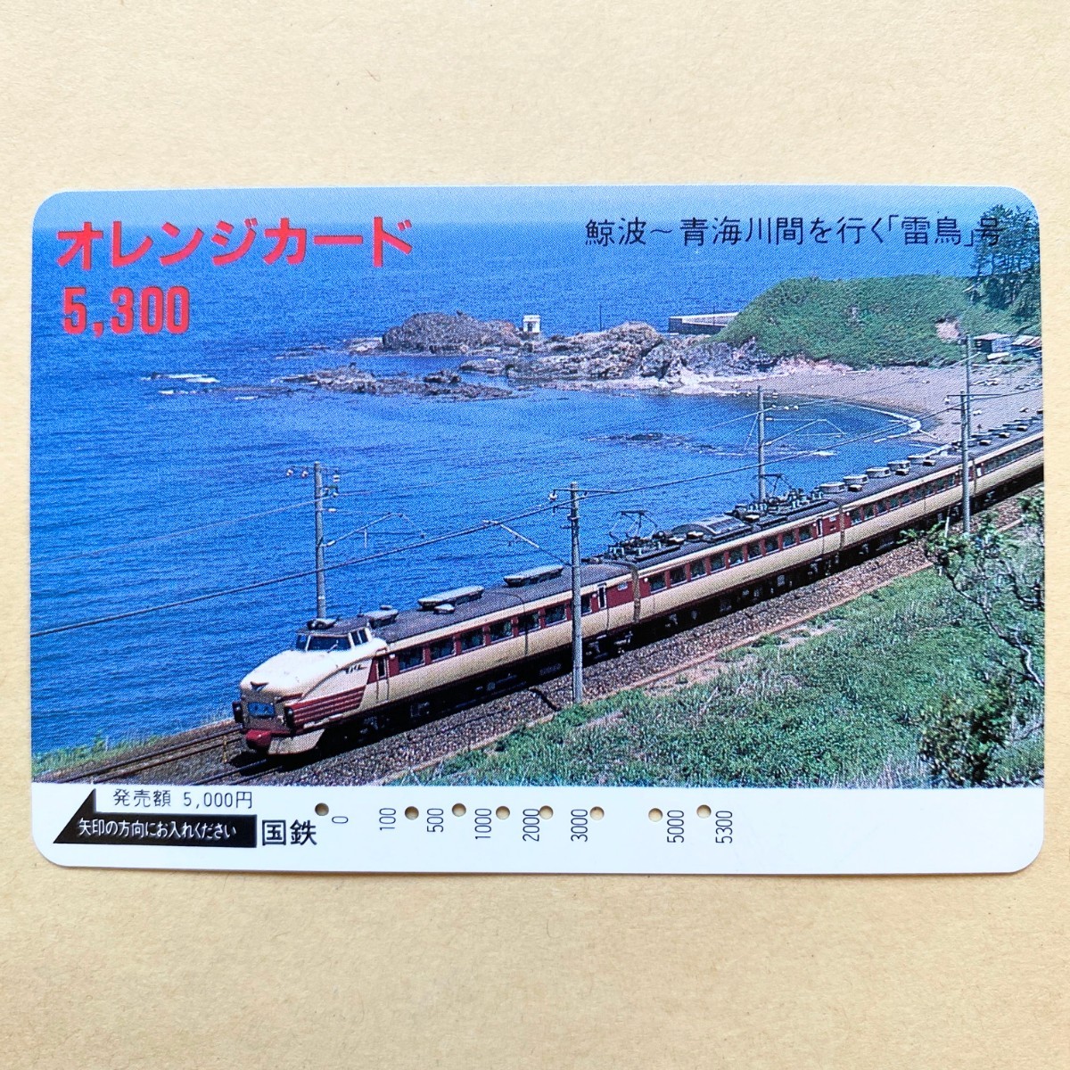 - 【使用済】 オレンジカード 国鉄 鯨波〜青海川間を行く「雷鳥」号