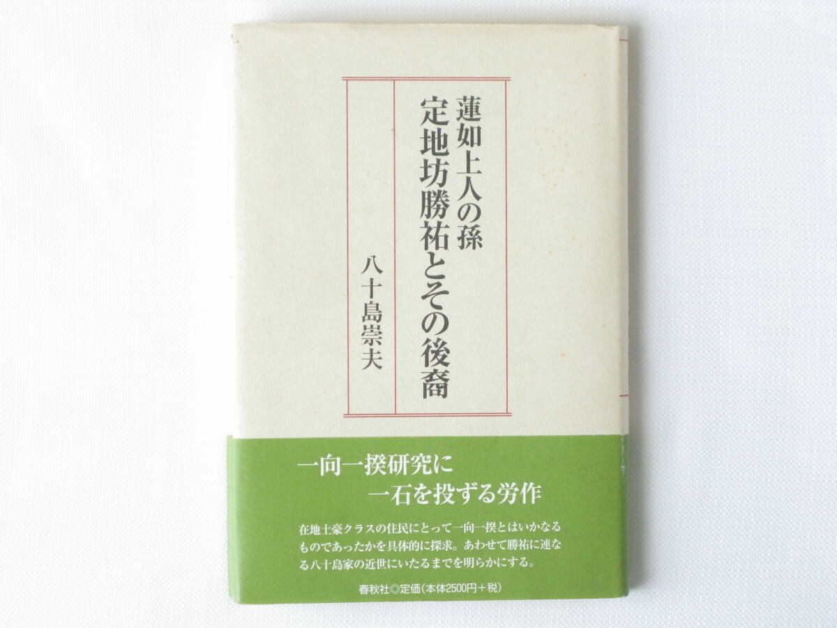 - 蓮如上人の孫定地坊勝祐とその後裔 八十島崇夫 春秋社 一向一揆研究に一石を投ずる労作 勝祐に連なる八十島家の近世にいたるまでを明らかに