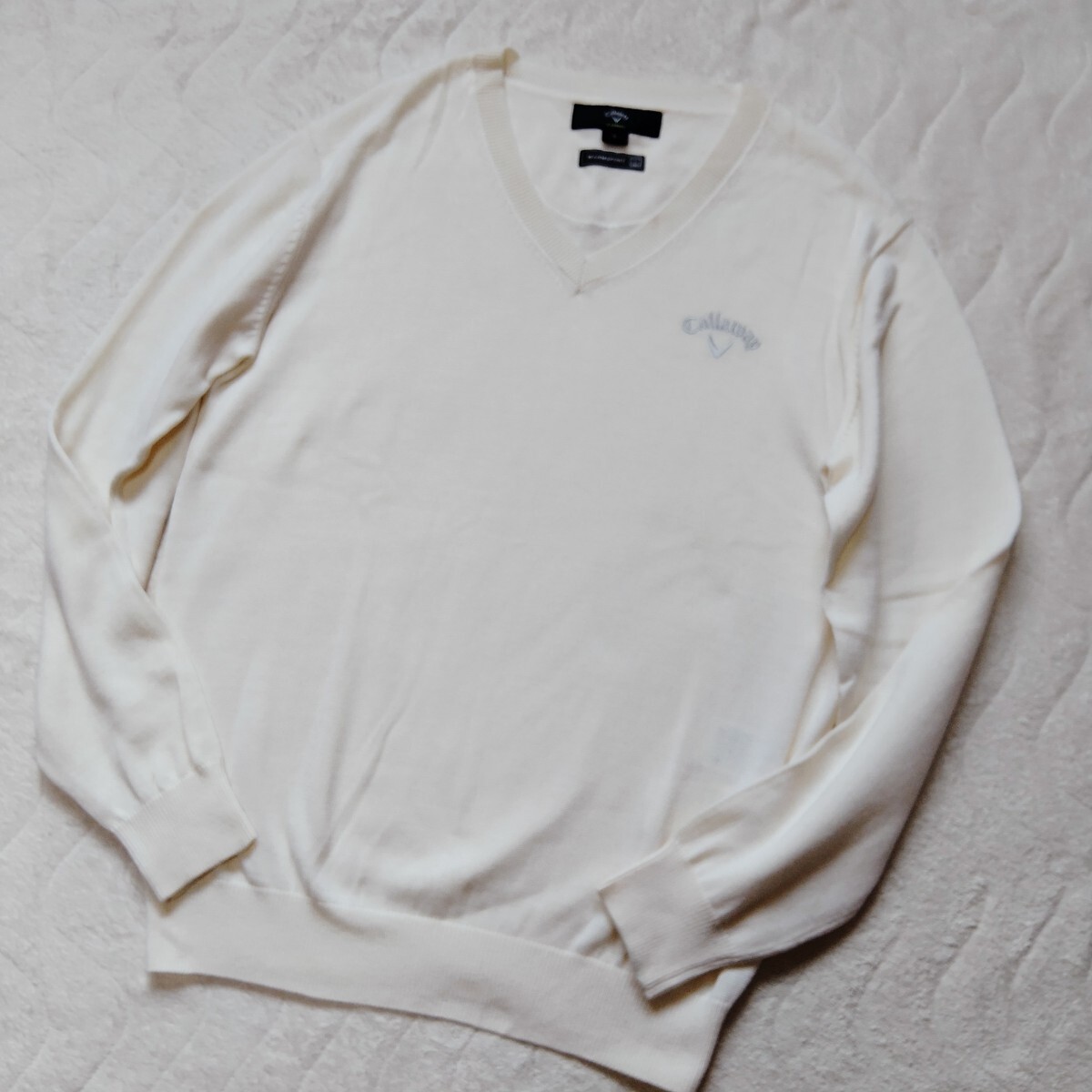 > キャロウェイ Callaway Xシリーズ*長袖薄手ニット*ゴルフウェア メンズ L*アイボリー*Vネック*ロゴ刺繍