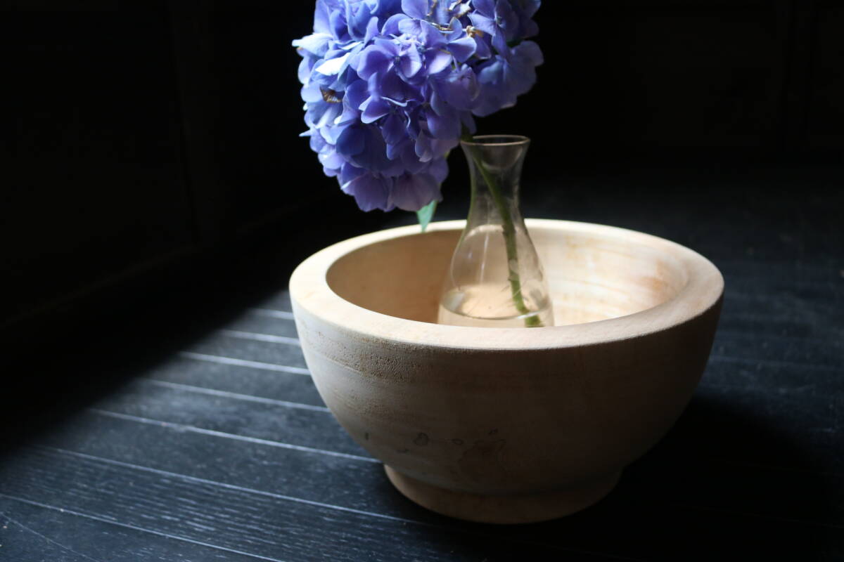> 【伊董】B113.アンティーク!古民芸!木地仕上げ!古い鉢未塗装未使用うるし鉢昭和朴の木サラダボウルお椀刳貫鉢 #古民芸 #白木 #古道具