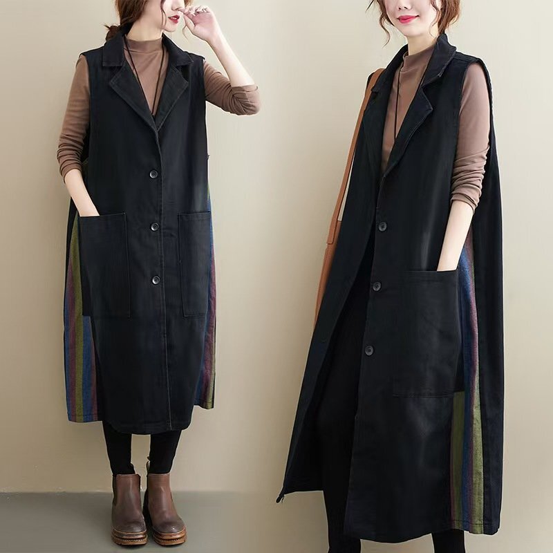 - LRM2611★新品ロングベスト レディース 黒 ベスト 夏 薄手 サマージャケット 袖なし チョッキ ファッション ゆったり XLサイズ