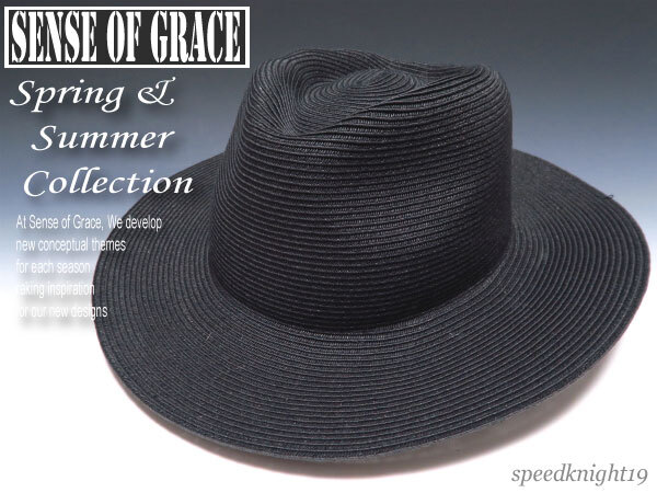 > grace★ロングブリムブレードストローハット【黒】新品 定価¥4500 サイズ調節可能 男女兼用 UV90%CUT つば広 センスオブグレース