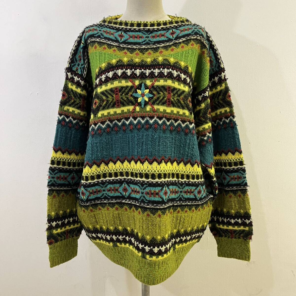 > FICCE YOSHIYUKI KONISHI 総柄ニット ニットセーター 刺繍 ボーダー柄 上質 フィッチェ ヨシユキコニシ ドン小西【送料一律/同梱可能】E