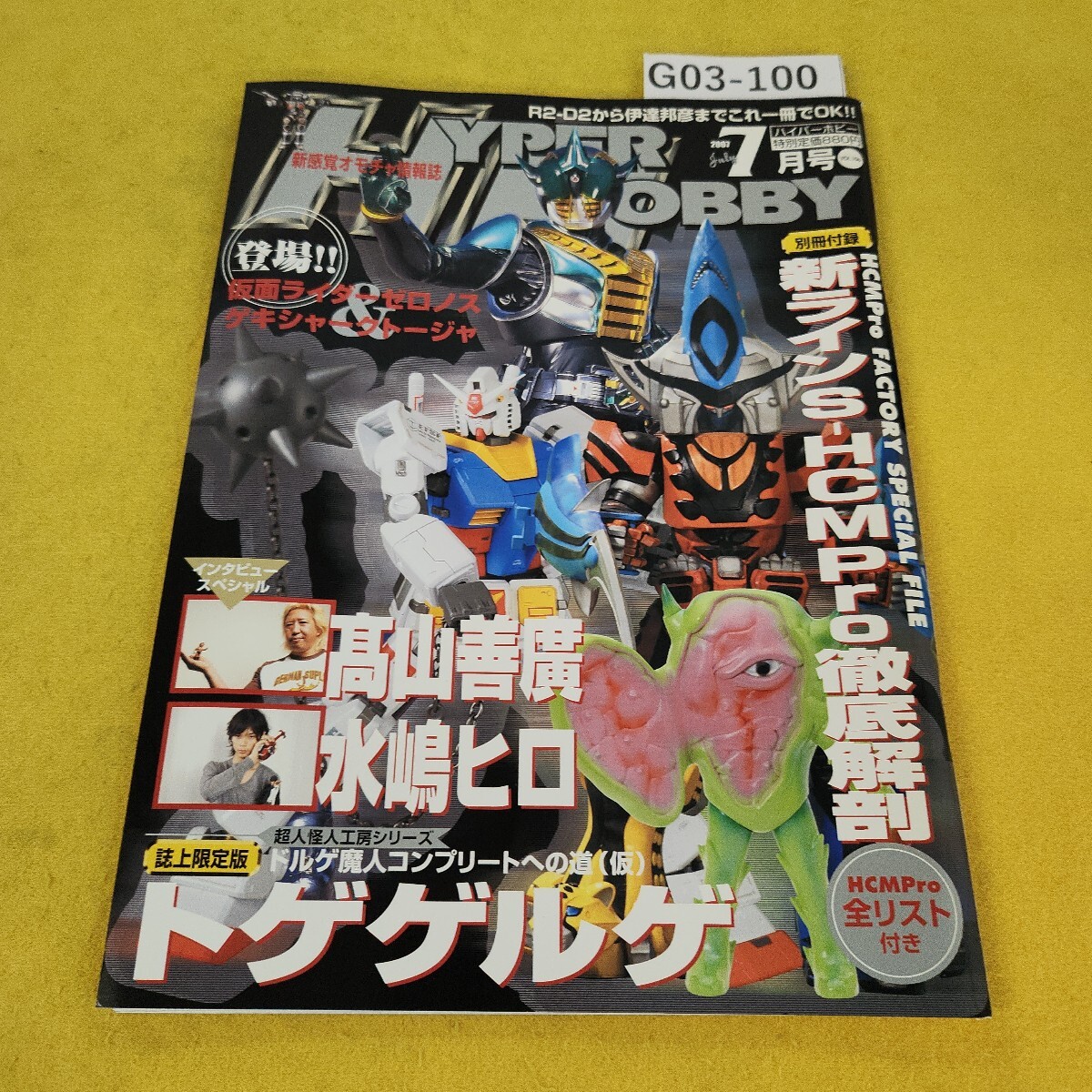 > G03-100 ハイパーホビー 2007年7月号 仮面ライダーゼロノス/ゲキシャークトージャ他 徳間書店 別冊付録あり、その他付録なし。寄れ角傷あり