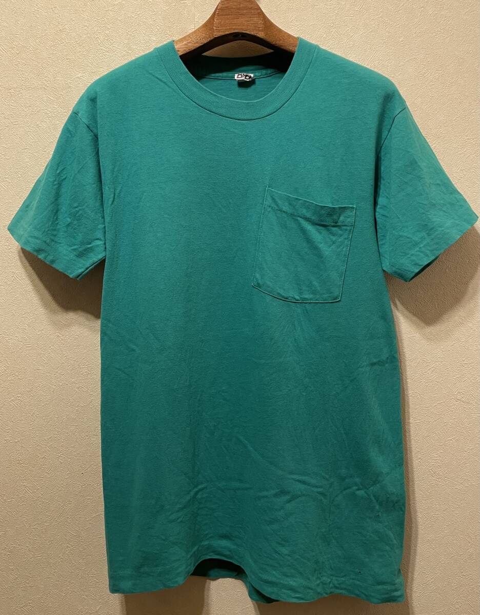 - USA製80sビンテージBVDポケットTシャツMターコイズ緑グリーン100%COTTONコットン無地ポケT米国製アメリカ製80年代(hanes fruit of the loom