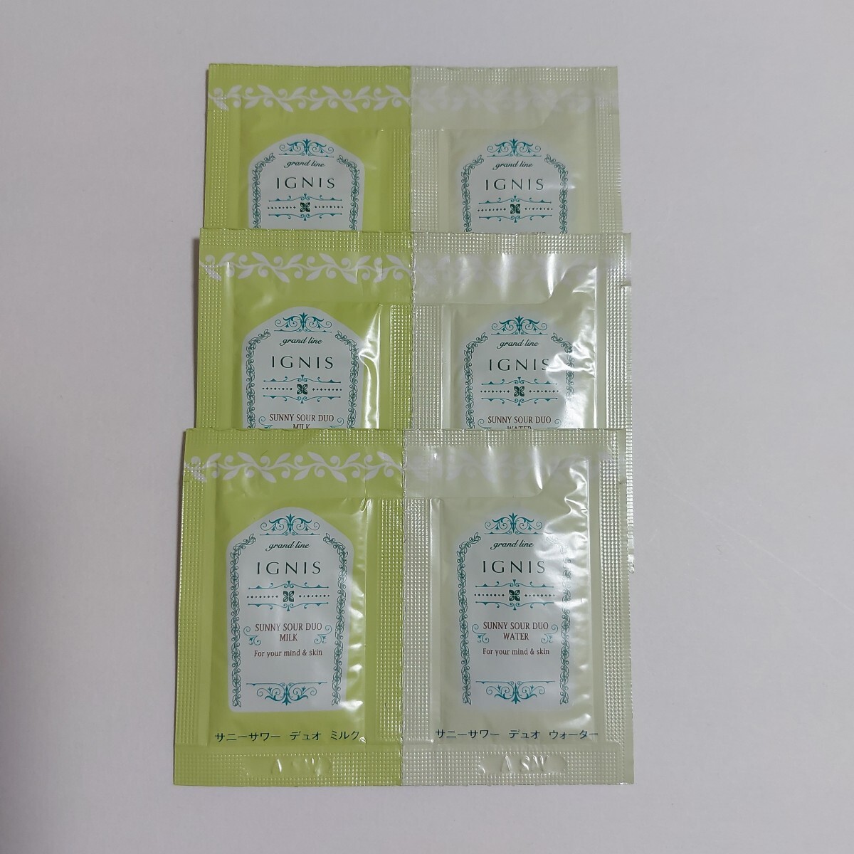 - IGNIS★イグニス★サニーサワー デュオミルク★乳液★3.0g×3包★サニーサワー デュオ ウォーター★化粧水★3.0ml×3包★サンプルセット