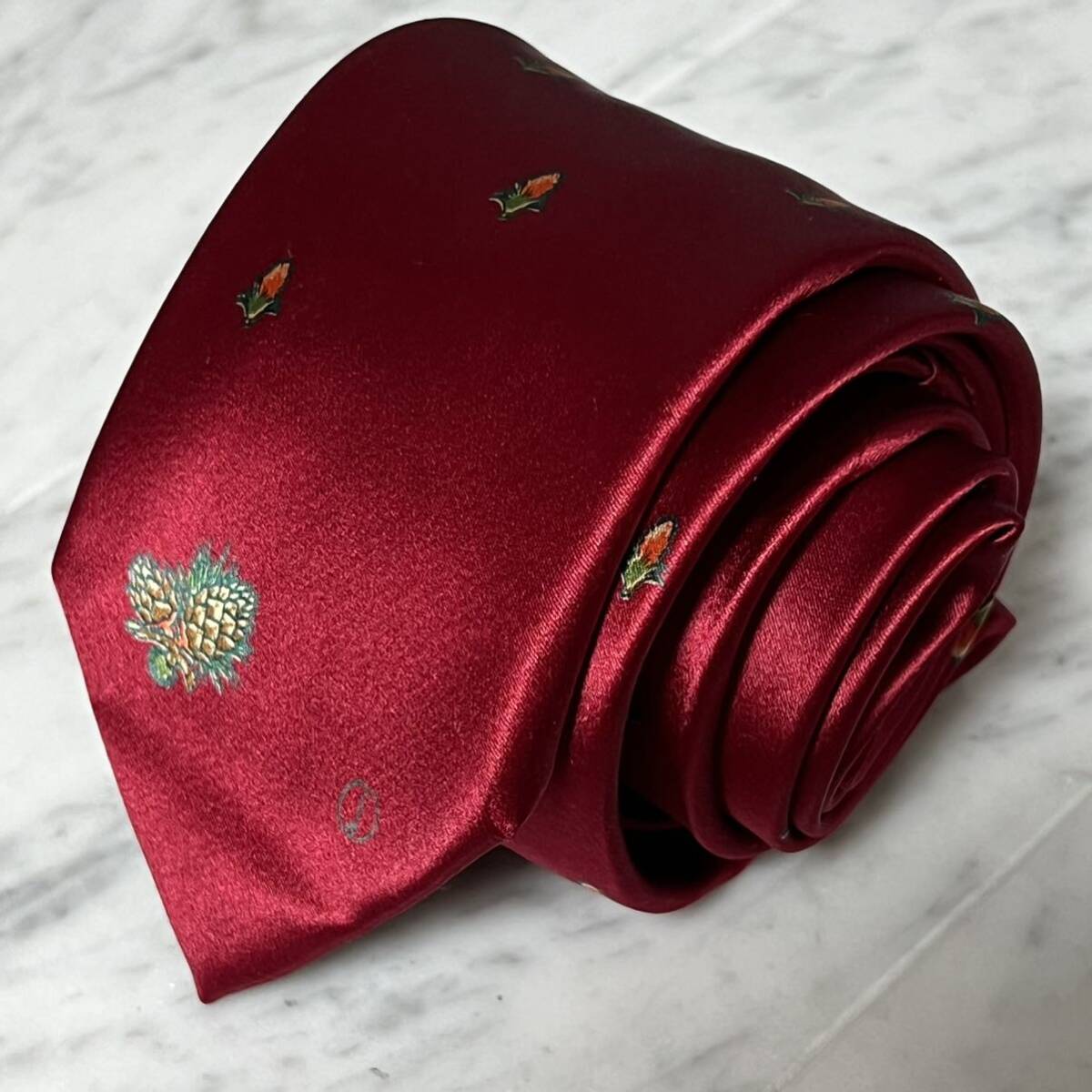 - 999円~ dunhill ネクタイ レッド 光沢 ワンポイントロゴ 植物 総柄 (R2)