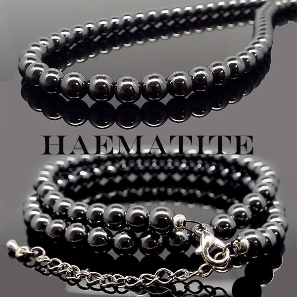 - 天然石 パワーストーン ネックレス ヘマタイト 磁気あり 約6mm N1-82-6m1p