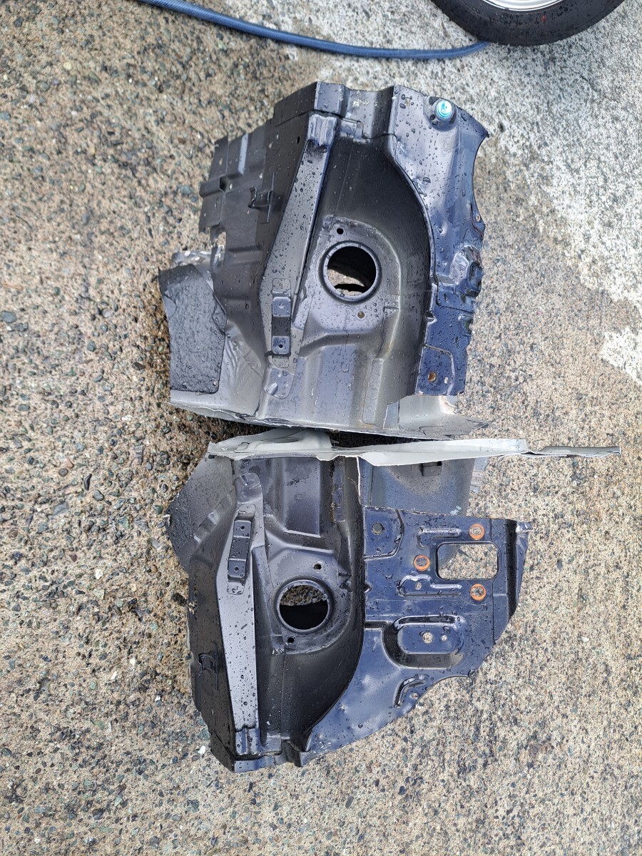 - C35 ローレル リヤサスペンション上部 カットボディ アッパーマウント部分 メダリスト クラブS GV1 黒色 突き抜け 事故 修理