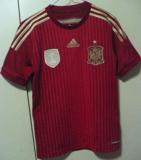 - 美品 adidas【アディダスジャパン(株)】製2014スペイン代表半袖H(ホーム)ユニフォーム 160サイズ 赤×金 G85231