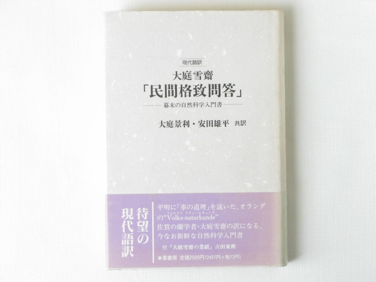 - 現代語訳 大庭雪齋「民間格致問答」―幕末の自然科学入門書― 大庭景利・安田雄平共訳 葦書房 付「大庭雪齋の業績」 古田東朔