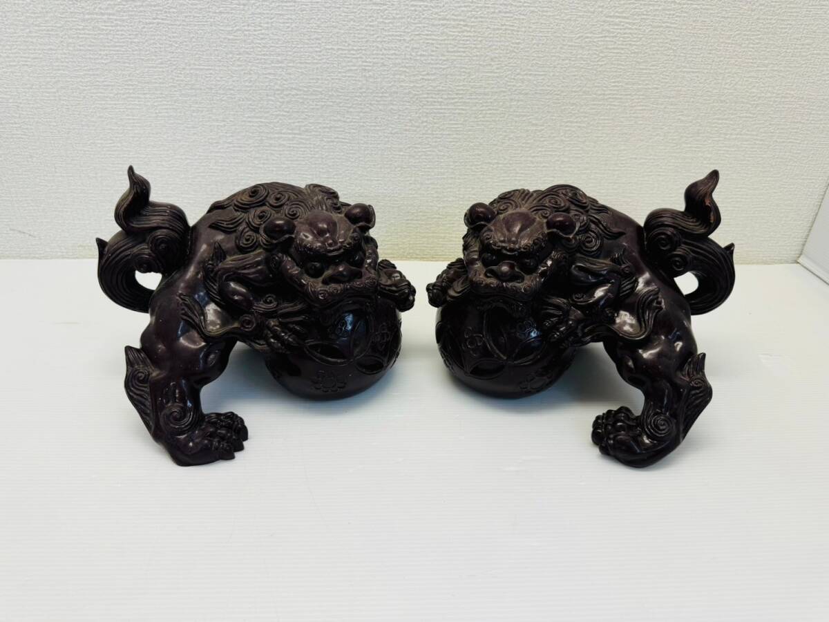 > な1475-1 シーサー・狛犬・唐獅子・玉乗り・赤獅子・魔除け・2点セット W250×D150×H175mm