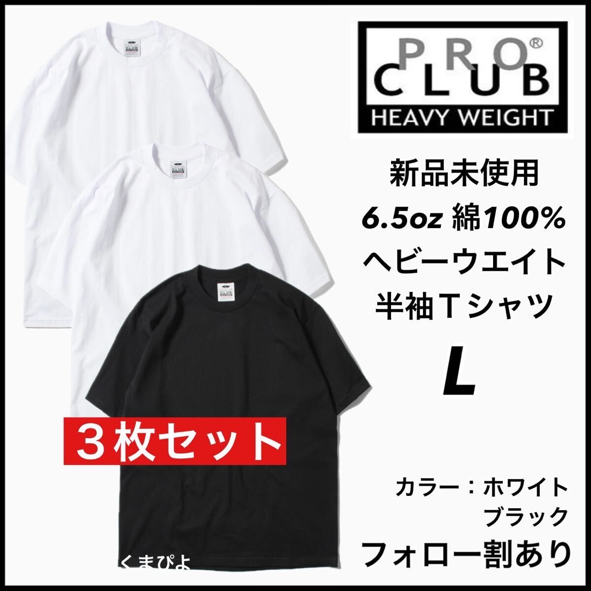 - 新品 プロクラブ 6.5oz ヘビーウエイト 無地 半袖Tシャツ 白黒3枚 Lサイズ PRO CLUB
