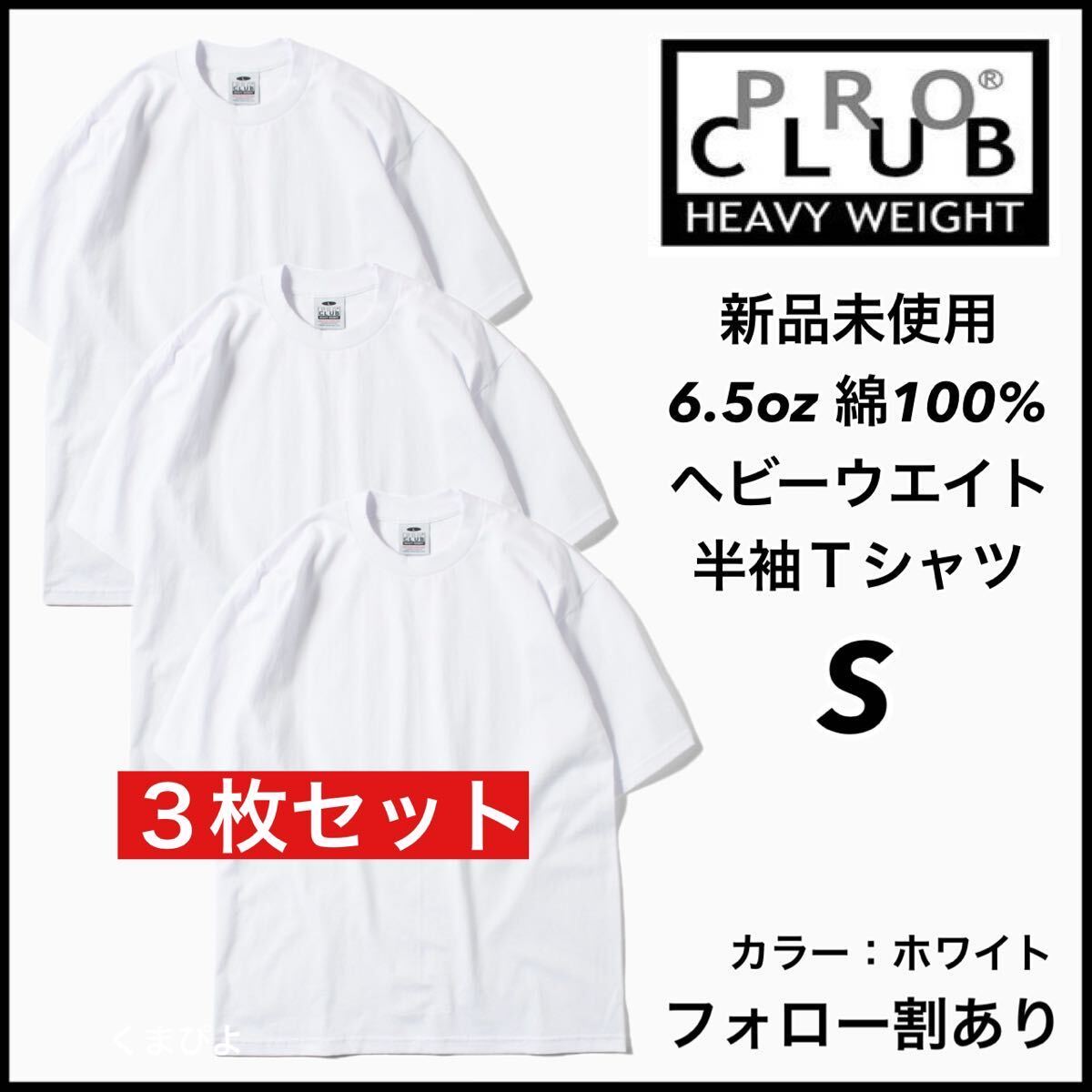 - 新品 プロクラブ 6.5oz ヘビーウエイト 無地 半袖Tシャツ 白3枚 S サイズ PRO CLUB