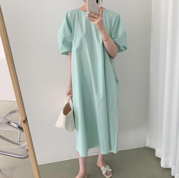 - 夏新作 / ワンピース 半袖 ロング ゆったり きれいめ 無地 コットン ロングワンピ ワンピ 着痩せ 上品 大人 マキシワンピース / グリーン