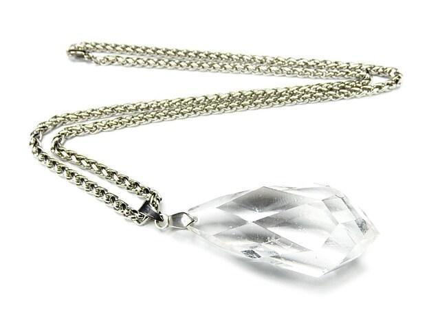 - AA天然水晶 オリジナル しずく カット ペンダント 天然石 ステンレス ネックレスプライム