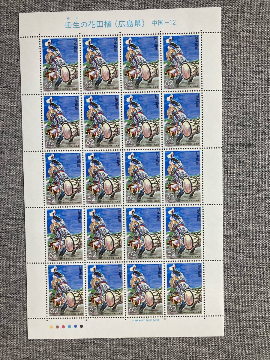 - ★未使用 ふるさと切手 壬生の花田植 広島県 中国地方 1993年 平成5年 切手シート 62円 20枚 日本郵便
