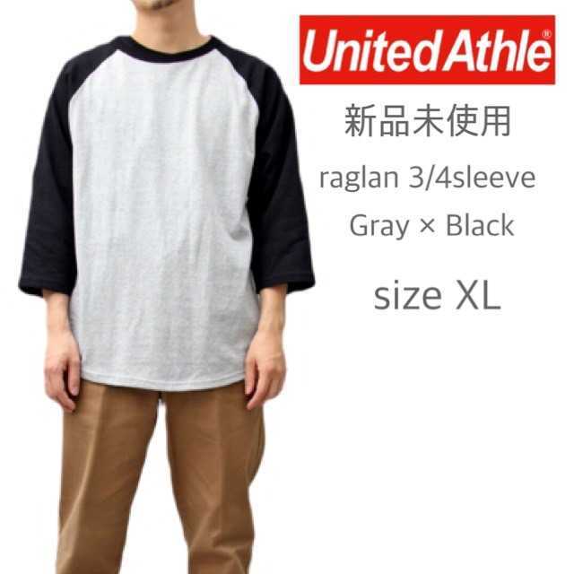 - 新品 ユナイテッドアスレ ラグラン 7分袖 Tシャツ グレー×ブラック XL United Athle 504501 5.6オンス ラグラン 3/4スリーブ
