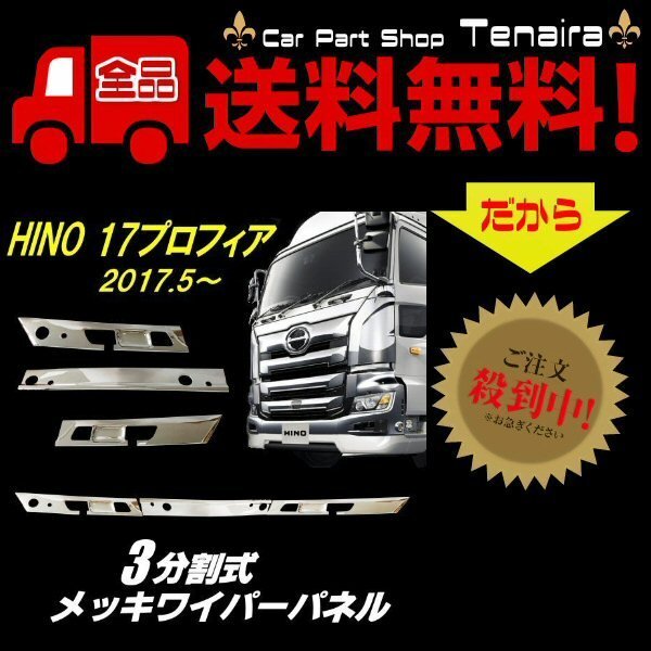 > 日野 17 プロフィア メッキ ワイパー パネル ABS製 3分割 鏡面 ガーニッシュ トリム 大型 トラック ドレスアップ 送料無料/6