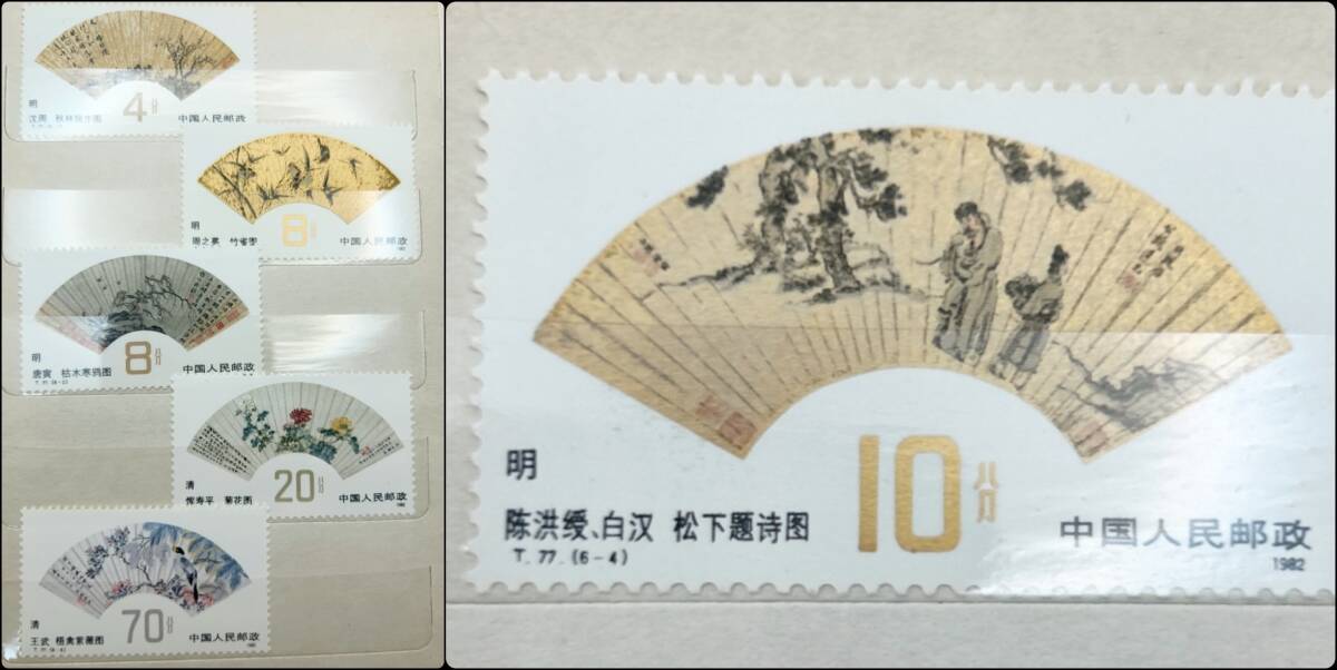 - 〓外国切手〓 中華人民共和国 明・清の扇面画 切手6種セット 秋林独歩他 @中国人民郵政 レトロ・アンティーク