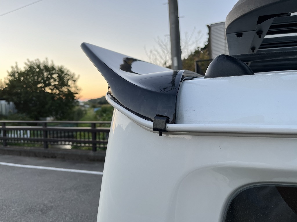 - ボディ穴あけ不要! 塗装済み JB64w JB74 ジムニー シエラ FRP 日本製 跳ね上げ リア ウィング ルーフ スポイラー エアロ ダックテール