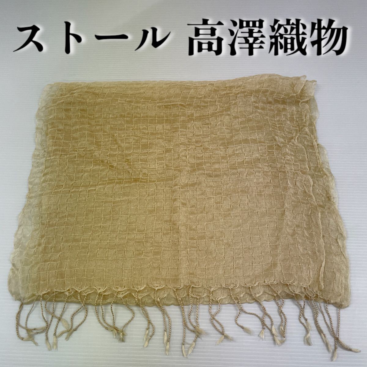 > 【ストール 高澤織物】未使用 アイボリー チェック シルク? 春夏 スカーフ ショール 肩掛け 膝かけ 国産 日本製 防寒 #0263-315Z1