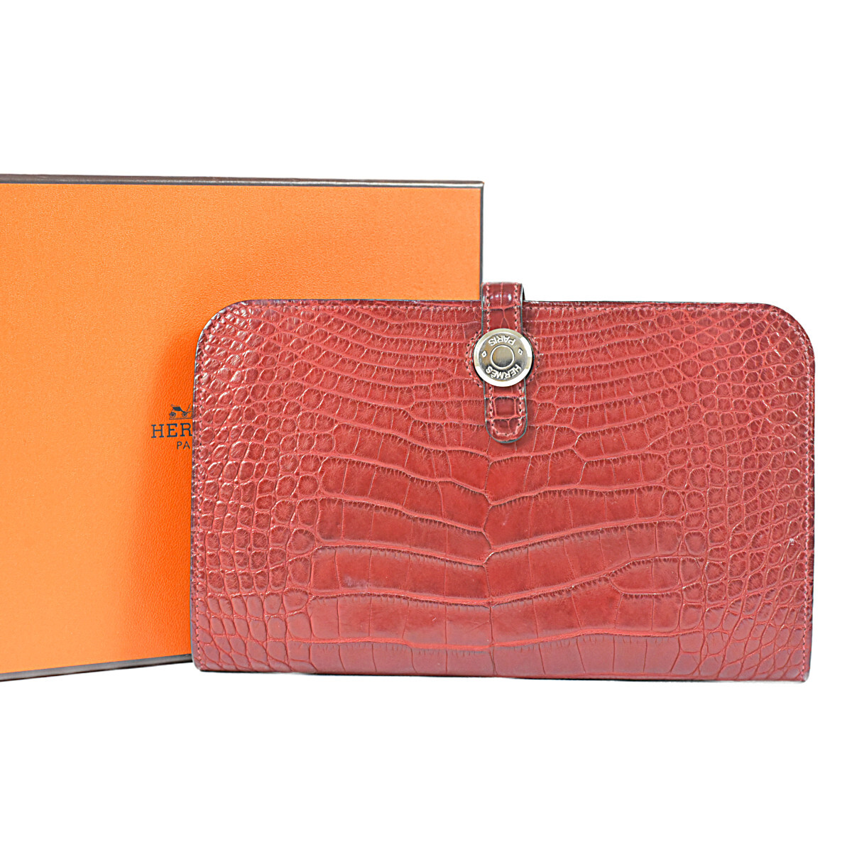 - エルメス 超豪華 極上の逸品 ドゴン デュオ 長財布 アリゲーターマット クロコダイル 2014年 □R刻印 シルバー金具 HERMES DOGON GM
