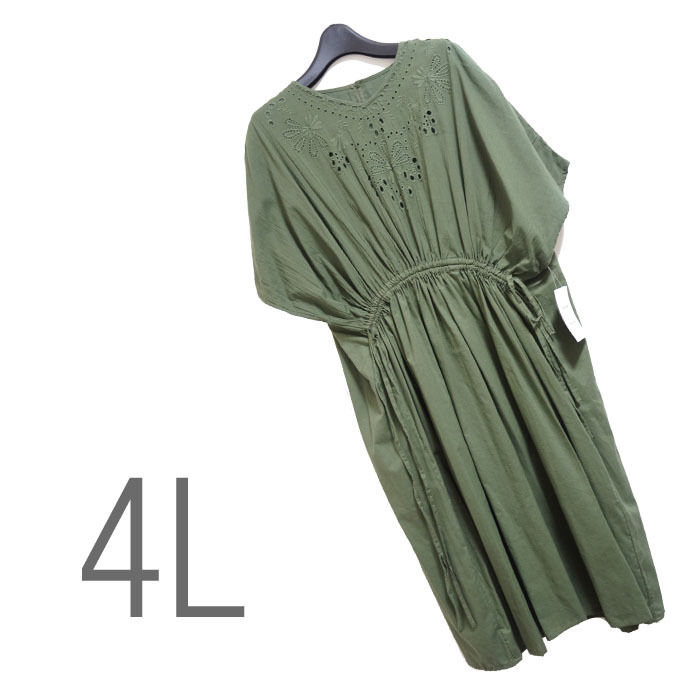- ●新品/ワンピース/4L/グリーン系/レース/綿/ナチュラル/レディース●f10266