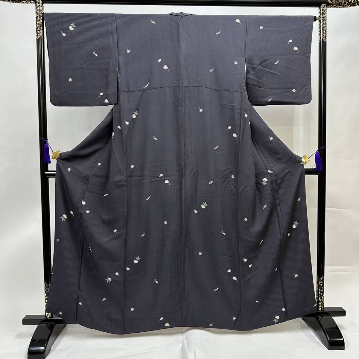 - 【七福】c253 季節の野菜柄 小紋 着物 かぶ 茄子など 紋意匠 暗紋 身丈 約 160cm 裄 約 65.5cm